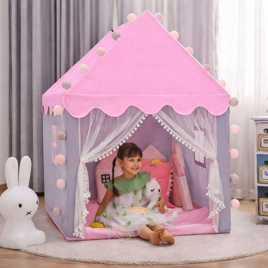 Детска палатка за игра с LED лампи Kruzzel, Розово-сива, Размери 130х100х115 см