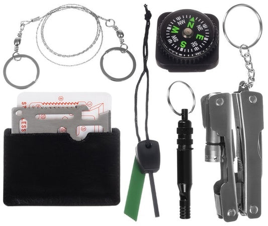Комплект за Оцеляване 7 в 1, Компас, Запалка, Клещи, Нож и др, Черен