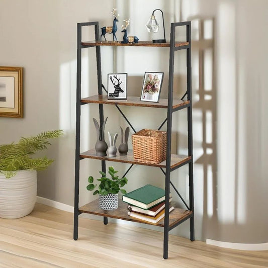 Стояща етажерка стълба, 4 рафта, тъмнокафява, 60x35x147 см