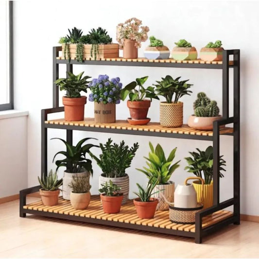 Цветарник, с черни метални рамки, 3 рафта