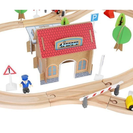 Комплект Дървено влакче Kruzzel, 89 части, 4 метра релси