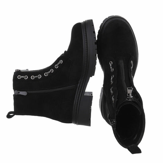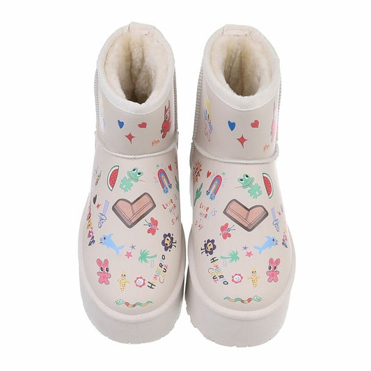 Дамски класически боти до глезена, Велур/Еко кожа, Бежови