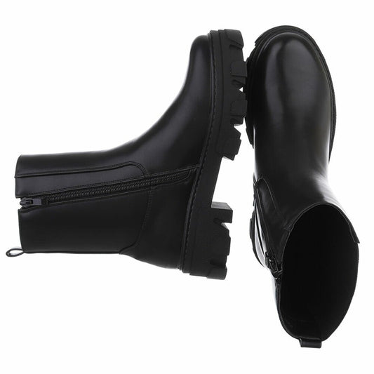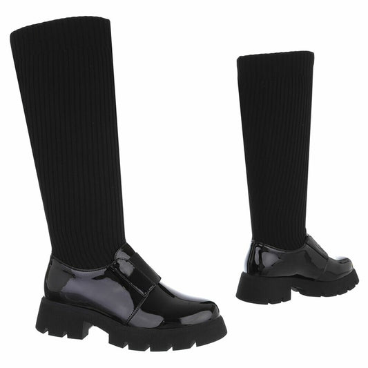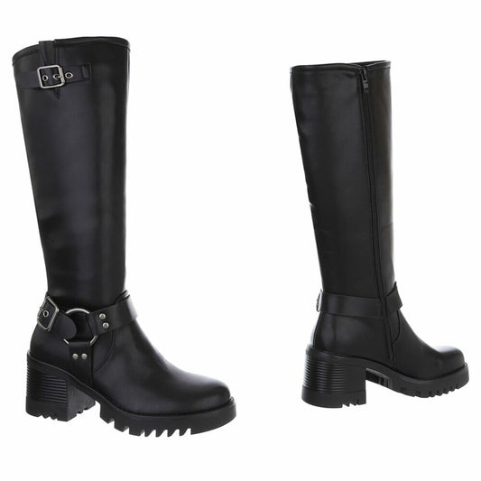 ПромоцияДамски ботуши с ток, Еко кожа, Черен