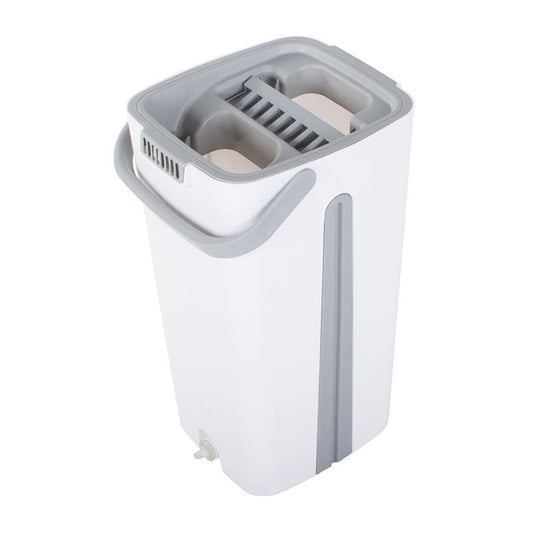 Плосък моп с двукамерна кофа, включени 2 микрофибърни подложки, Бяло-сив