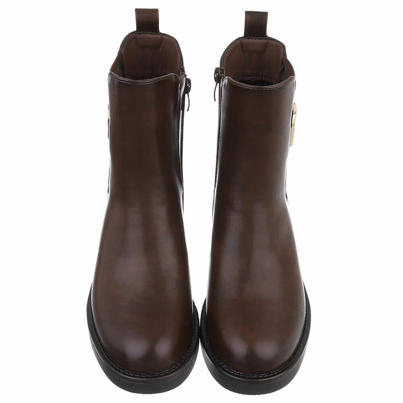 Дамски боти до глезена, еко кожа, кафяви