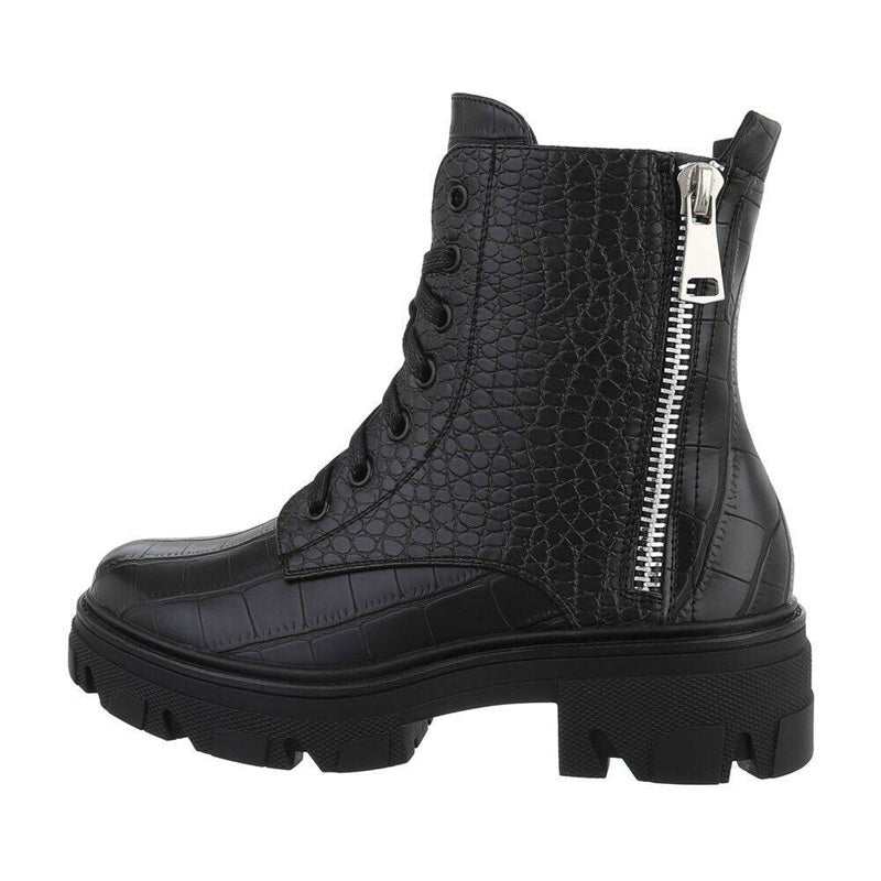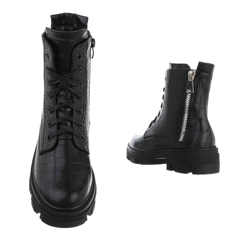 Дамски боти, Черни, Еко кожа, крокодилска шарка