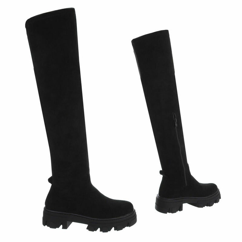 Дамски ботуши над коляно, велур, черни