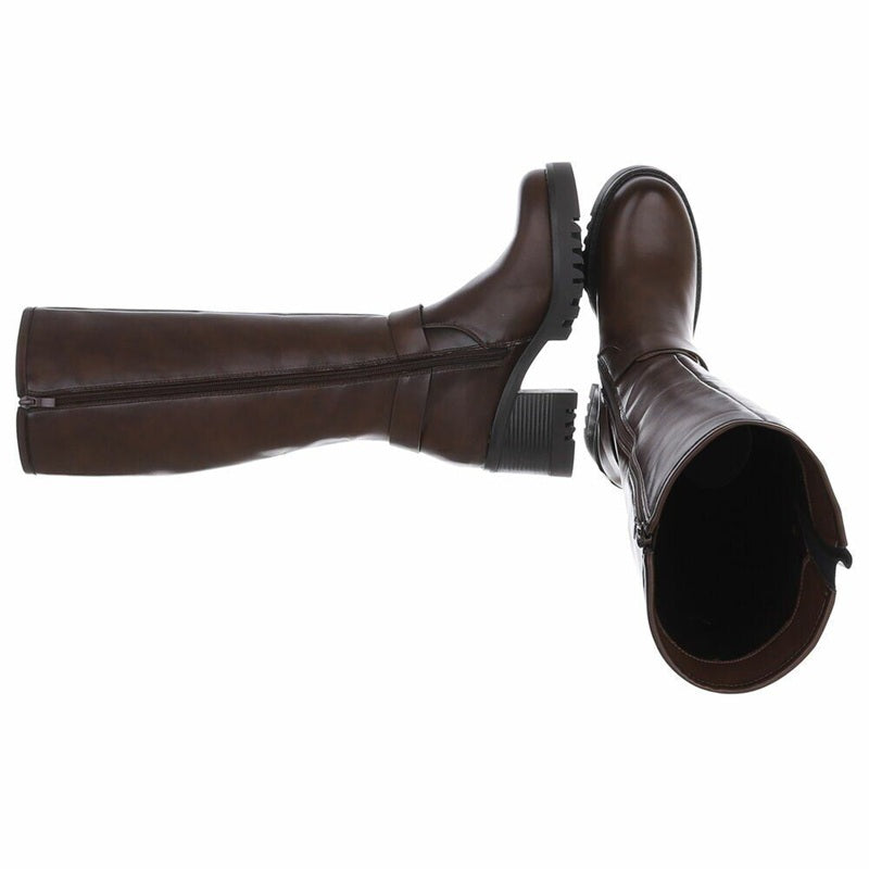 Дамски ботуши с ток, Еко кожа, Кафяв