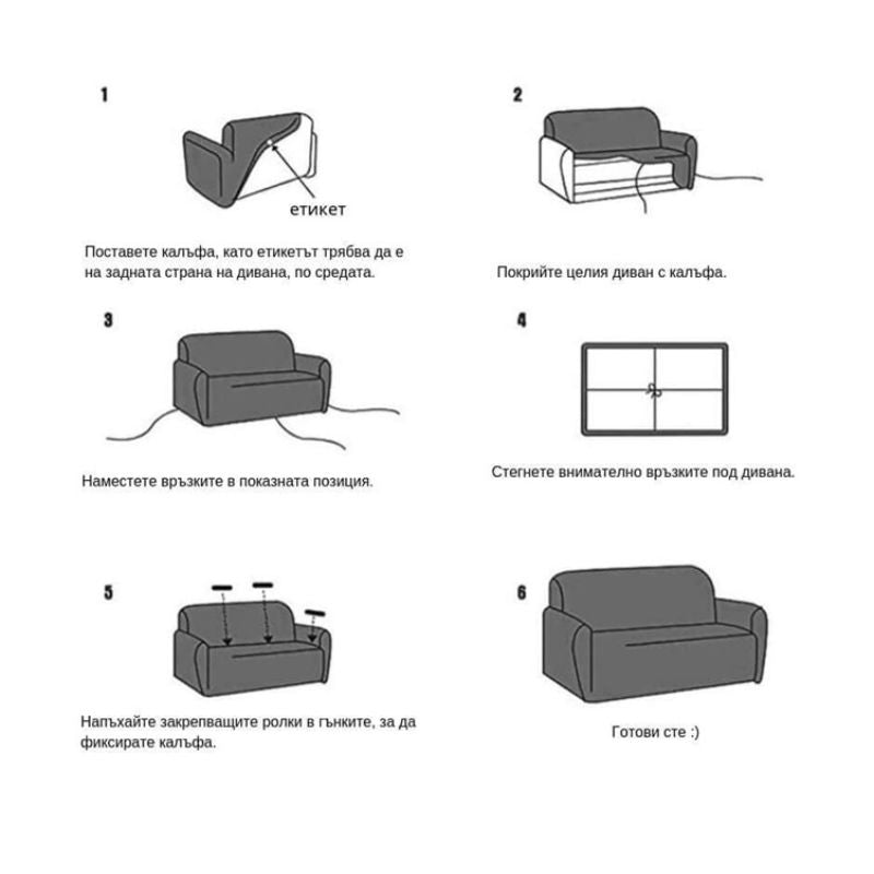 Еластични покривала за всякакъв тип дивани! Подходящо и практично решение да освежите старите дивани, или да предпазите новите от всекидневната употреба. Покривалата се поставят лесно и не изискват сериозна поддръжка! Материята се разтяга и прилепва плътно по формата на дивана.