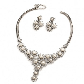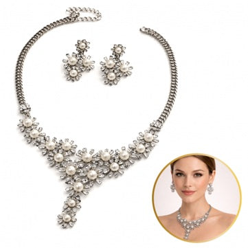Елегантен комплект бижута с перли и кристали – Колие + Обеци