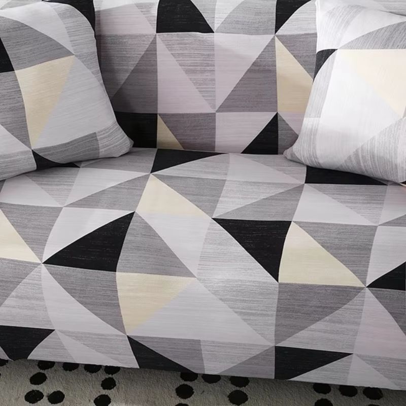 Калъф за ъглов диван, сив с триъгълници