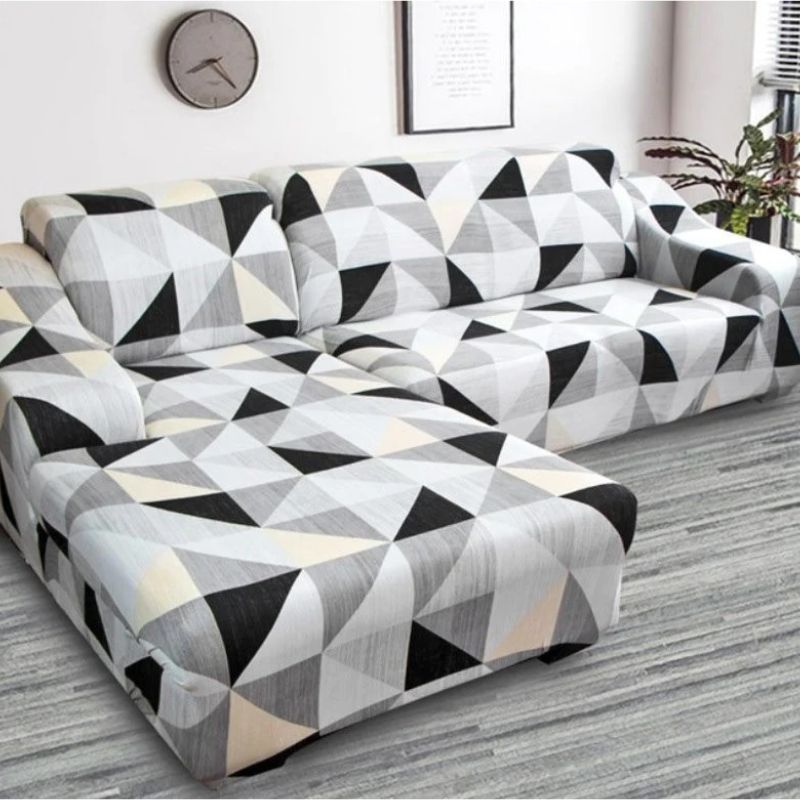 Еластичен калъф за ъглов диван, сив с триъгълници