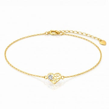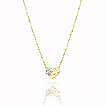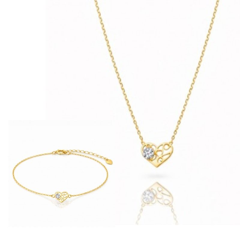 Комплект колие и гривна, стомана с 14-карата златно покритие, ажурно сърце, кубичен цирконий