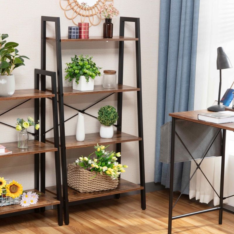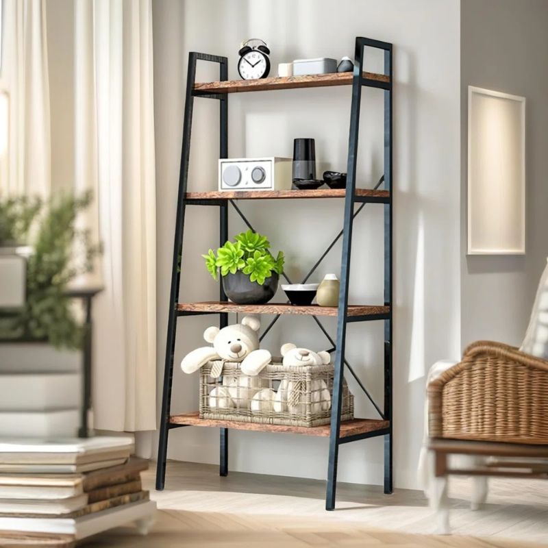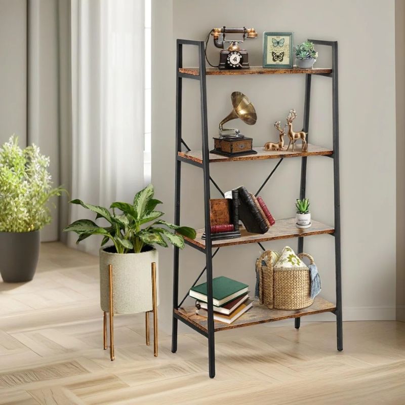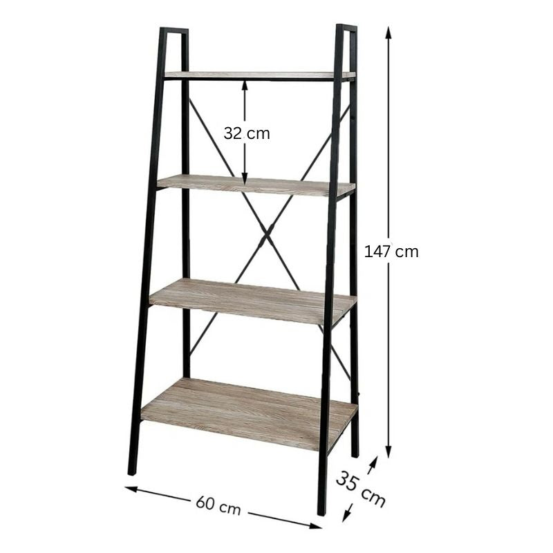 Тази елегантна и стилна етажерка разполага с 4 отворени рафта за показване на книги, снимки и други. Рафтовете тип „стълба“ имат минималистичен дизайн, който се вписва безпроблемно в повечето съвременни стилове.
