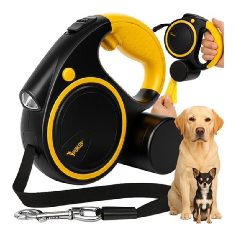 Автоматичен повод за кучета PURLOV с LED фенер, дължина 5м, за кучета до 25 кг
