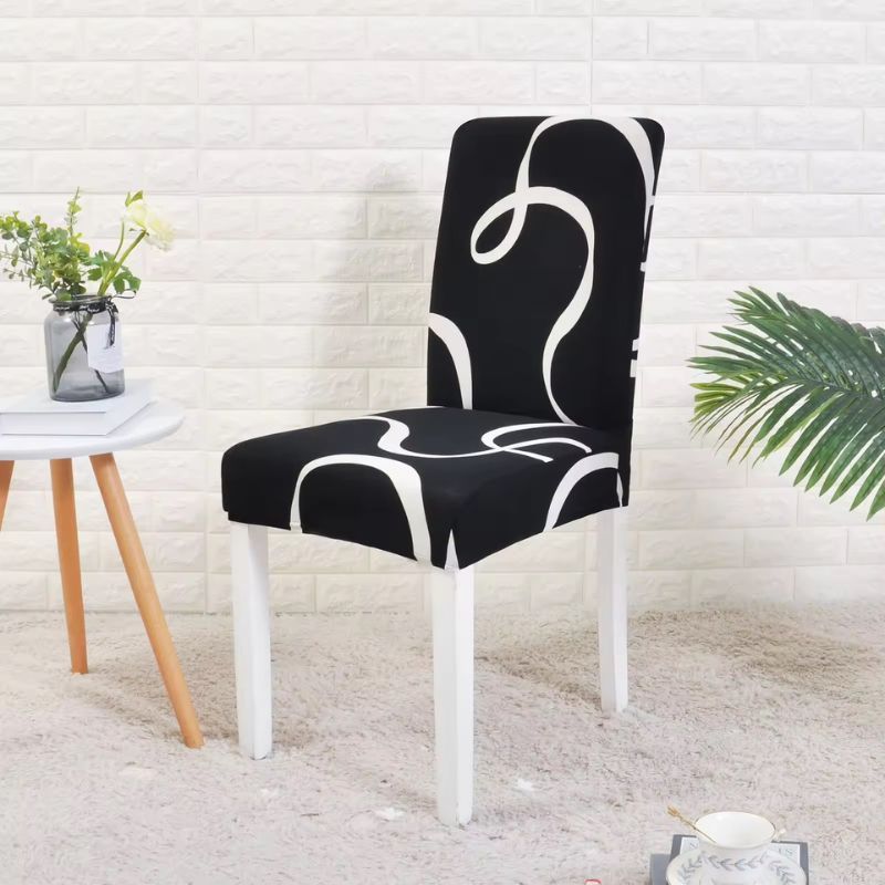 Еластични калъфи за стол, Черно-бял