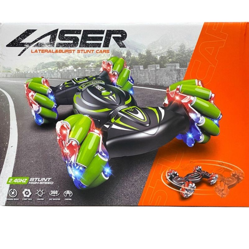 Каскадьорската кола се управлява с дистанционно управление. Тя се върти на 360 градуса, завърта се и е със светлини и музика.