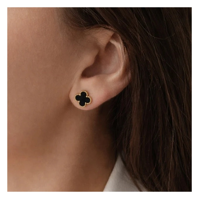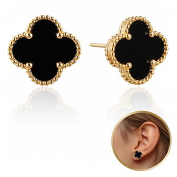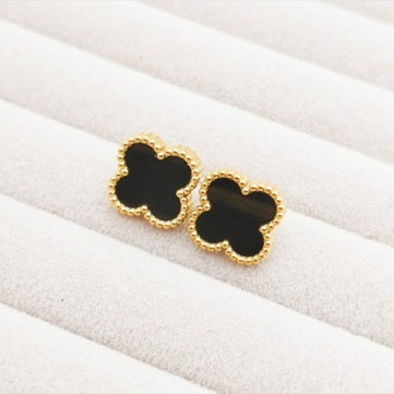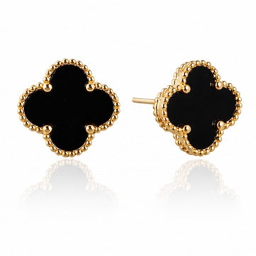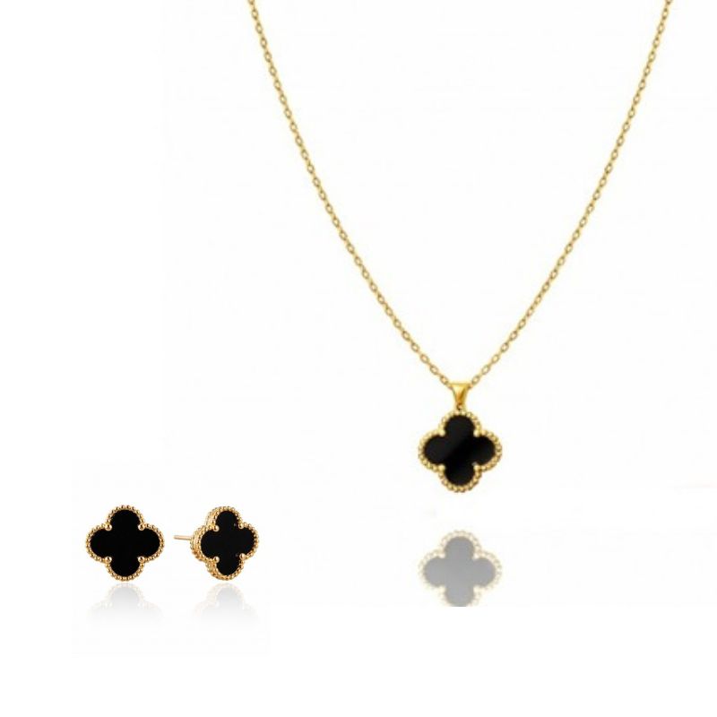 Комплект колие + обеци с черни детелини, стомана с 14-карата златно покритие