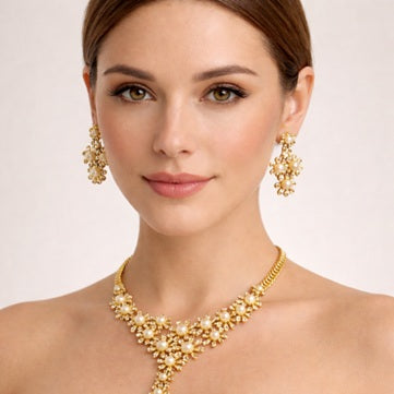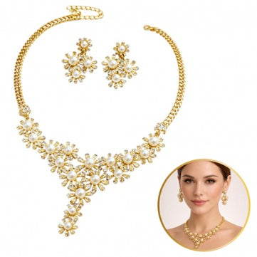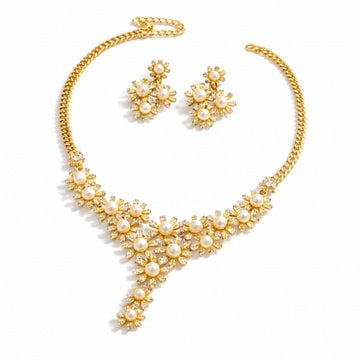 Елегантен комплект бижута с перли и кристали – Колие + Обеци