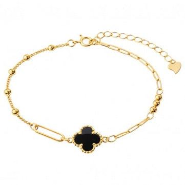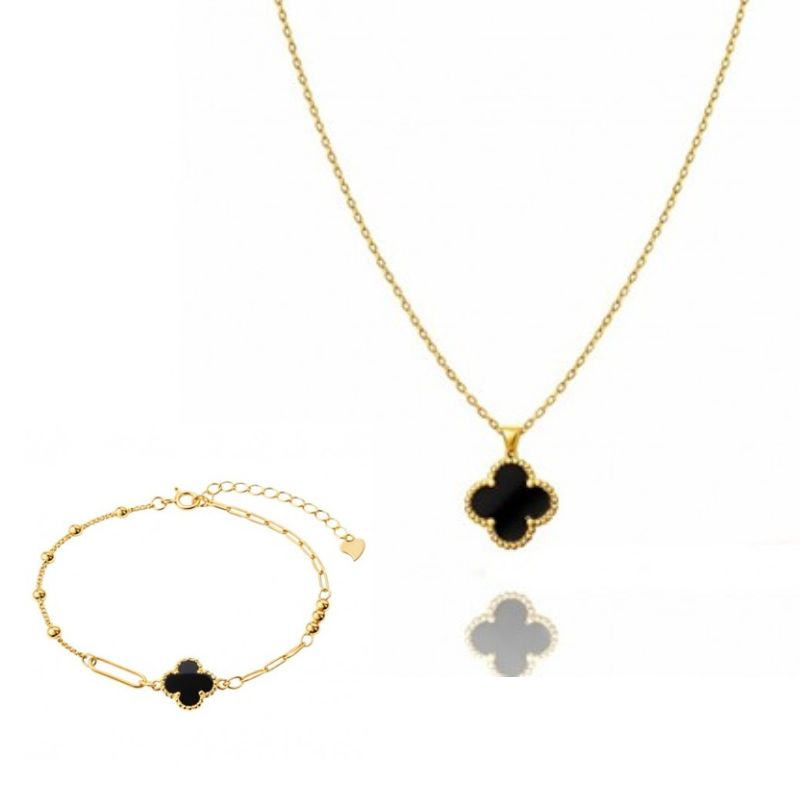 Комплект колие + гривна с черна детелина, стомана с 14-карата златно покритие