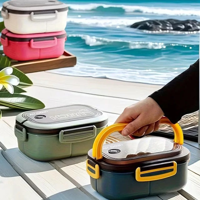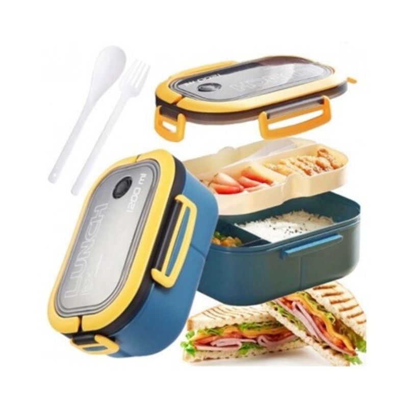 Кутия за обяд, херметична, 1200 мл, двуслойна микровълнова бенто кутия с отделения