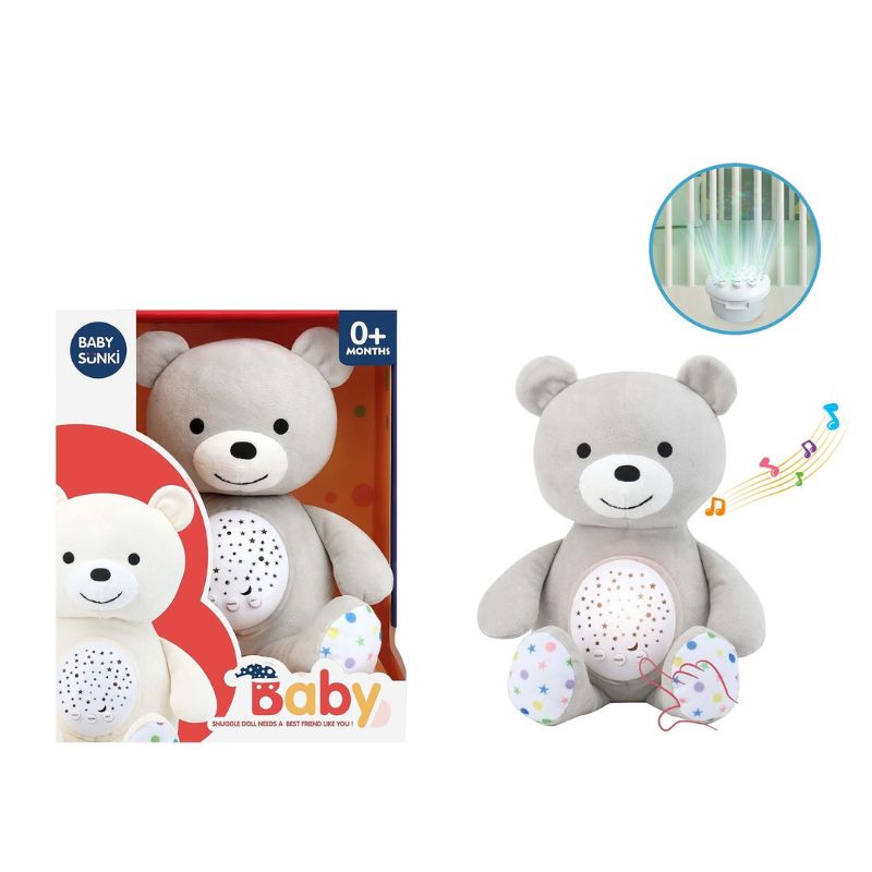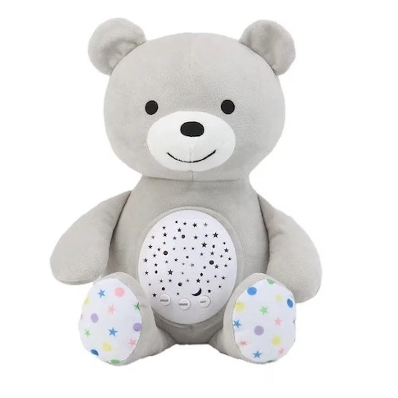 Музикално мече с приспивни мелодии и прожектор- Сив