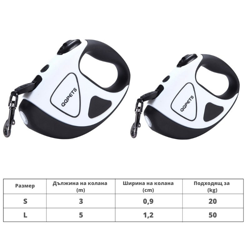 Автоматичен повод за кучета QQPETS, Бял, 2 размера