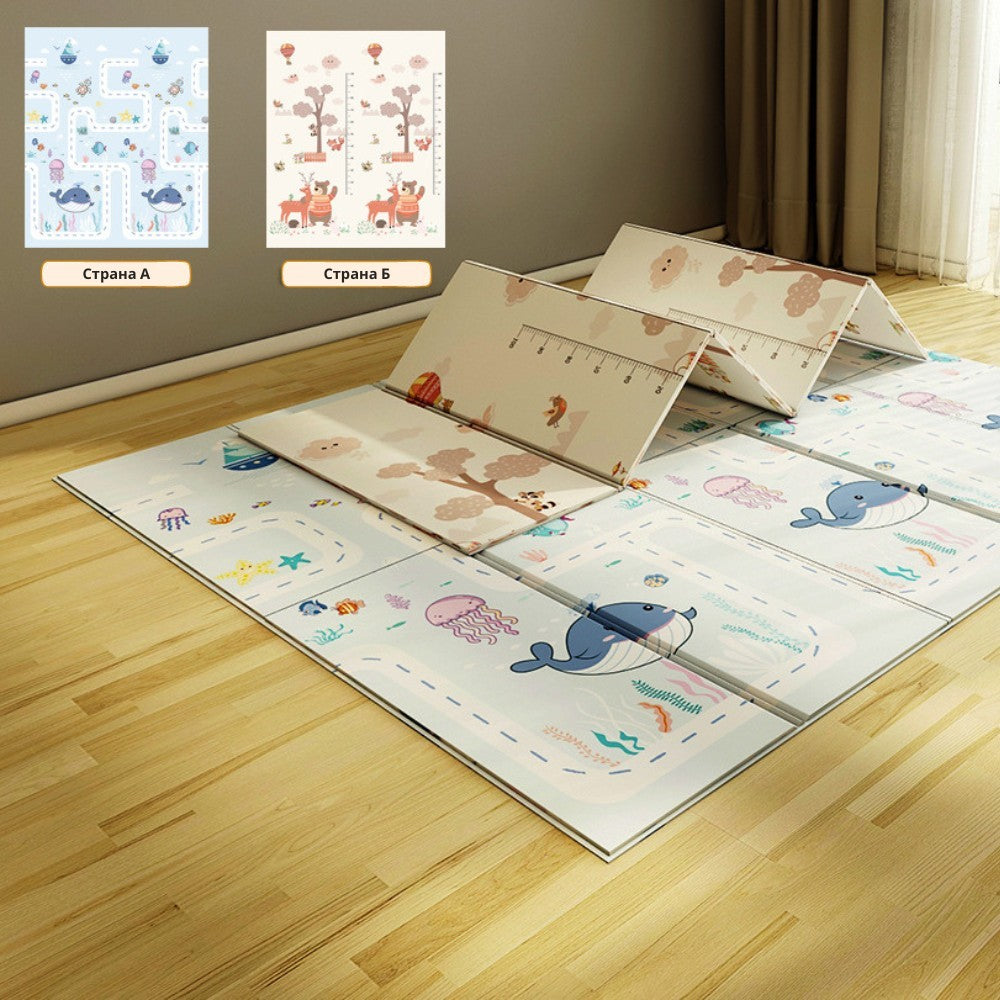 Детско Килимче за Пълзене и Игра от Термоизолираща пяна, 180х200х1 см, Сгъваемо, С Калъф за съхранение